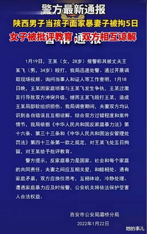 这起家暴事件让我们看到了人性的阴暗面,也让我们意识到预防家暴的重要性。让我们携手共进,共同营造一个和谐、美好的家庭环境!